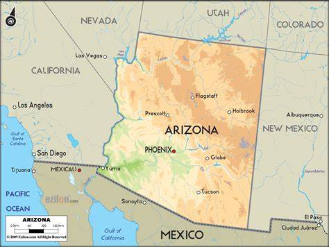 lower area of Arizona. The west part of Arizona is complimented by the Colorado River while the east part has
